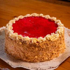 Delgadas capas de panqueque chocolate húmedo, relleno ganache chocolate al 54% cacao, logrando textura suave e intensa. un placer irresistible para los amantes del cacao.